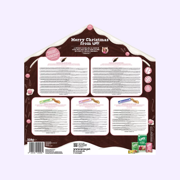 Offrez à votre félin un mois de décembre plein de plaisir grâce au Calendrier de l’Avent WOW CAT. Une surprise différente derrière chaque case : snacks croustillants fourrés ou gourmandises crémeuses… un pur bonheur pour les petites moustaches !